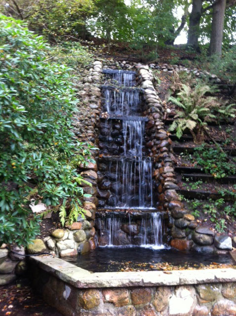 Sen fortsatte vi nerför ”Hälsan” inne bakom rhododendron-buskagen. Här gick man inte då det mörknat. Men dagtid kunde man gå här inne i ”skogen av rhododendron”. Det var den väg man gick då man skulle till ”bibblan”. Men mörka kvällar gick vi ute i lampskenet. Bibblan var inrymd i de runda flyglar på konserthusets nedervåning.