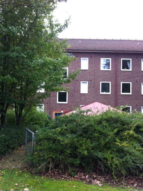 Tydligen är det ingen numera som piskar mattor. Piskställningarna var borta och istället är det inrättat små bersåer där dessa ställningar var belägna. En Weber-grill stod i en av bersåerna så det verkar till att användas. Detta var en omöjlighet då jag växte upp, att man skulle gå ut och sätta sig att umgås ute på gemensamhetsytorna.  Man umgicks inte familjer emellan. Det kändes som ”var och en sköter sitt”.