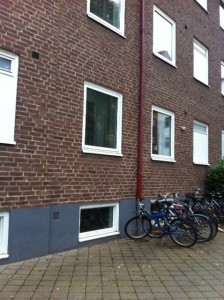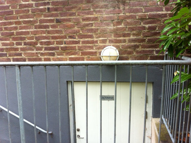 Inne på gården finns fortfarande en väl tilltagen källare för förvaring av cyklar. Väl utmärkt med skylt cykelrum. Undrar om den används?