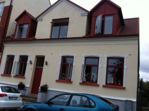 Färden gick ner förbi ”Krischans” gamla hus i Grubbagatan. Här stod många fönster ”på vid gavel” som mina föräldrar skulle uttryckt det. Man vädrade i hela huset trots den svala utomhustemperatur. Tog ett foto som jag mailade över till storebror. I detta hus bodde hans barndomskamrat. ”Krischan” hans farfar som ägde huset var målare. Jag skämtade med brorsan med frågeställningen -Tror du det luktar färg fortfarande i huset? Detta p.g.a. de öppna fönsterna.