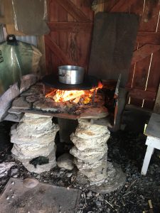 Och dimman som hade lättat uppåt på morgonen orsakade oss en riktig rejäl regnskur då vi skulle duscha efter bakningen, där stod vi i hällande ösregn och tvättade av oss röklukten i håret. Jag tycker det är roligt att baka, även om det inte är jag som sliter mest
