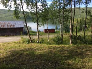 Nu följer en vilostund, kan behövas för min del. Degen ska jäsa. Maken förbereder med att hålla hällen varm, lägga ut bakdukar där vi förvarar de gräddade bröden. Ja, ska jag vara ärlig så jobbar jag också ….lite…. Jag förbereder lagom blandning på ”utbaksmjölet” den blandning av vetemjöl och grahamsmjöl. Vill ha grahamsmjöl på brödytan så smöret fastnar bättre då smörgåsarna ska bredas med smör. Sedan ska bakbordet strös mjöl på. 5 minuters andhämtningspaus…. Sätter mig på en stol och beundrar den fantastiska utsikt över sjön som det är denna morgon.
