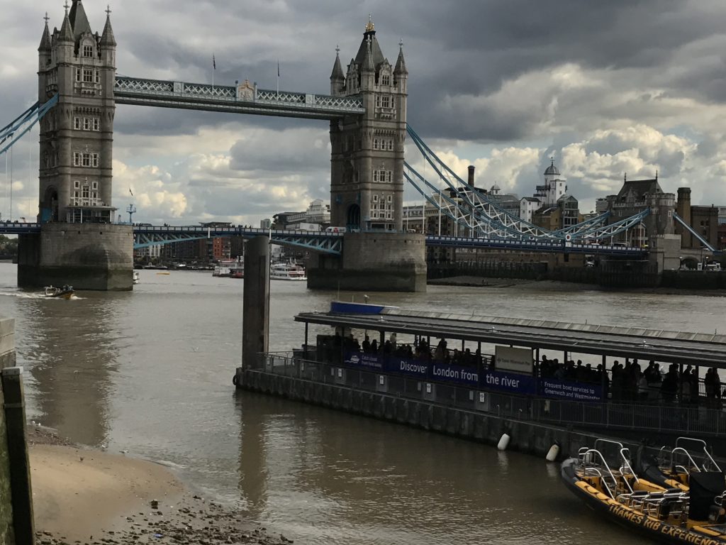 Jag kände mig nästan sprickfärdig. Tre koppar tea trodde jag aldrig jag skulle klämma i mig. Men det var så smakligt alltihop. Samtidigt som vi satt vid vårt fönsterbord!! och gled sakta utefter Themsen. Towerbridge, Londonbridge, Westminsterbridge och Milleniumbridge. De var bara några av dem vi gled under. Men det blev mycket bridge för min del…ha ha ha. En perfekt pensionärstillvaro.