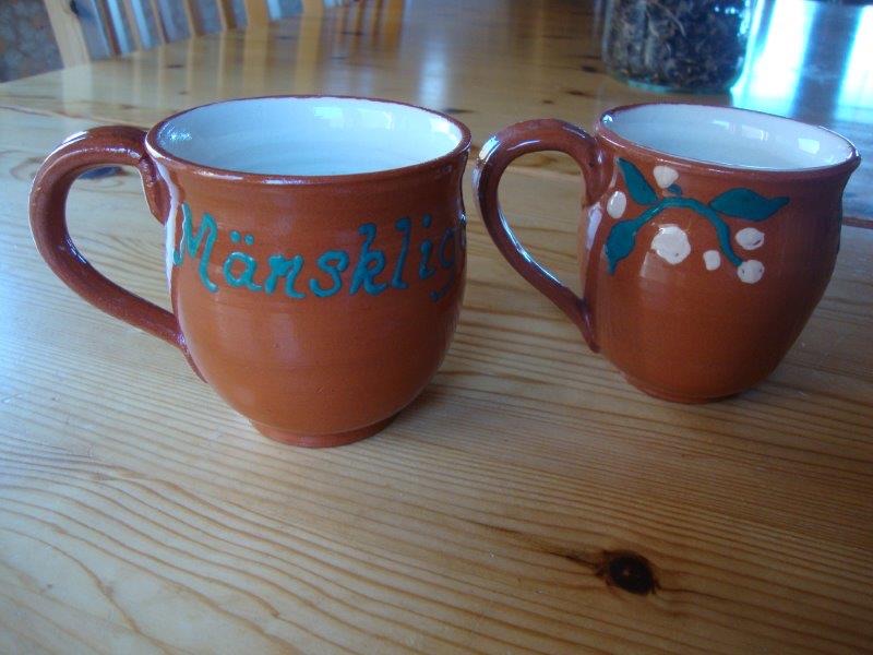 Nu väntar jag på ett foto för att se vad det är för keramik som brorsan inte var så förtjust i. I min förra skröna skrev jag att mina försök som keramiker gjorde oss nästan helt utan vänner. Syskon blir man bara av med genom naturliga orsaker, de kan man aldrig frånsäga sig i levande livet, så de lever kvar lite keramik i deras skåp. Enligt svägerskan väckte orden om mina keramikförsök dåliga vibbar hos brorsan. Och jag som inte ens minns vad jag förärat honom! Frågade svägerskan igår… jo sa hon, din mugg med texten ”Den mänskliga faktorn” blev aldrig riktigt uppskattad av honom. Jaså vadå, undrade jag. När jag tillverkade den var min bror i arbetsför ålder och hans arbete var just FAKTOR på ett tryckeri. Jag tyckte jag var vitsig som menade att han skulle ha den muggen i fikarummet på sitt jobb. Men jaså… den hade hamnat väl dold i ett skåp i stugan. Flera stora konstnärer före mig som aldrig får skörda lagrarna av sina framgångar medan de var i livet…. nej nu tillbaka till verkligheten och se om jag får rätt på tiderna i mitt huvud och i min mage. Också ett bekymmer att vara hungrig i rätt tid, både med eller mot mediciner och insulin.