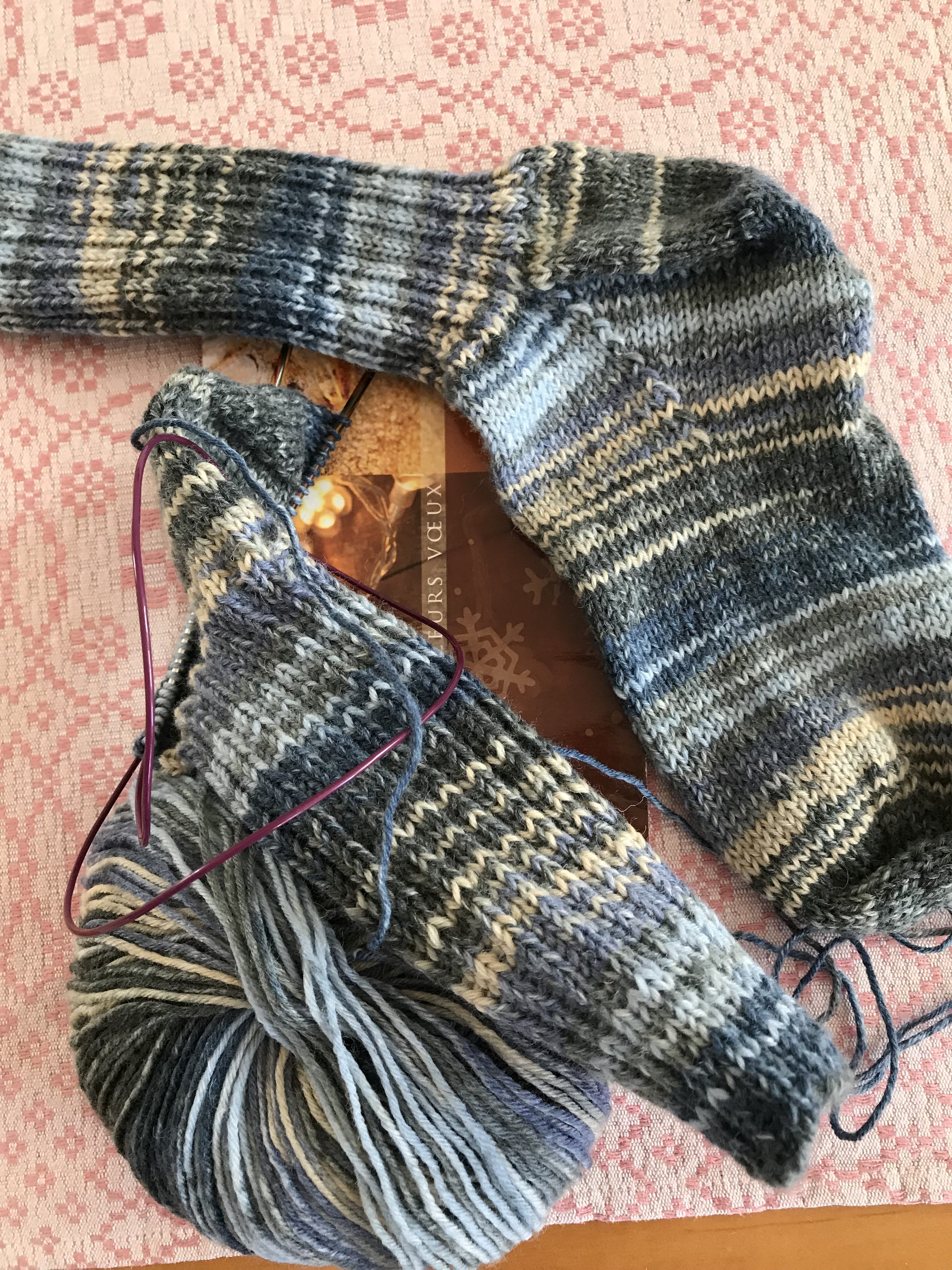 Jag jublade i veckan över strumpstickningens sista paret ut. Men nu sitter jag där med ytterligare ett par. Som jag berättade har jag sett att vissa människor blir glada över ett par fina vantar, en del uppskattar mina strumpor. Killar gillar strumpor före rosenvantar…. Jag har under årens lopp mottagit både små dukar och massor massor med grytlappar som gåva från mina patienter. Oh ja det har jag uppskattat, men som jag sa sistlidna skröna, bruksföremål är helt klart mest uppskattat. Så mina alster fortsätter jag att producera. Har beställning på något som jag inte har så bråttom med. Räknar med en livslängd som räcker till det också. Men jag skulle ta fram min vant-stickning igen. Jag gillar dessa små mästerverk, och jag upptäcker att jag behöver ett par själv! Det är som skomakarbarn, de går ofta barfota… men men, ett par strumpor får jag smita emellan med.