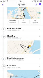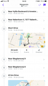 Sedan följde en resa i ryslig fart! 43 kilometer med en topphastighet av 157 km/h. Det är ingen varken buss- eller tågresa med den hastigheten. Men som mobbens ägare skrev i sin kommentar…transport med blåljus och tut-tut. 23 minuter mellan Helsingör och Köpenhamn, det var snabbt! Sen är det två sekvenser med ”no information available” beroende på att mobben troligen var på sjukhuset med sin ägare.