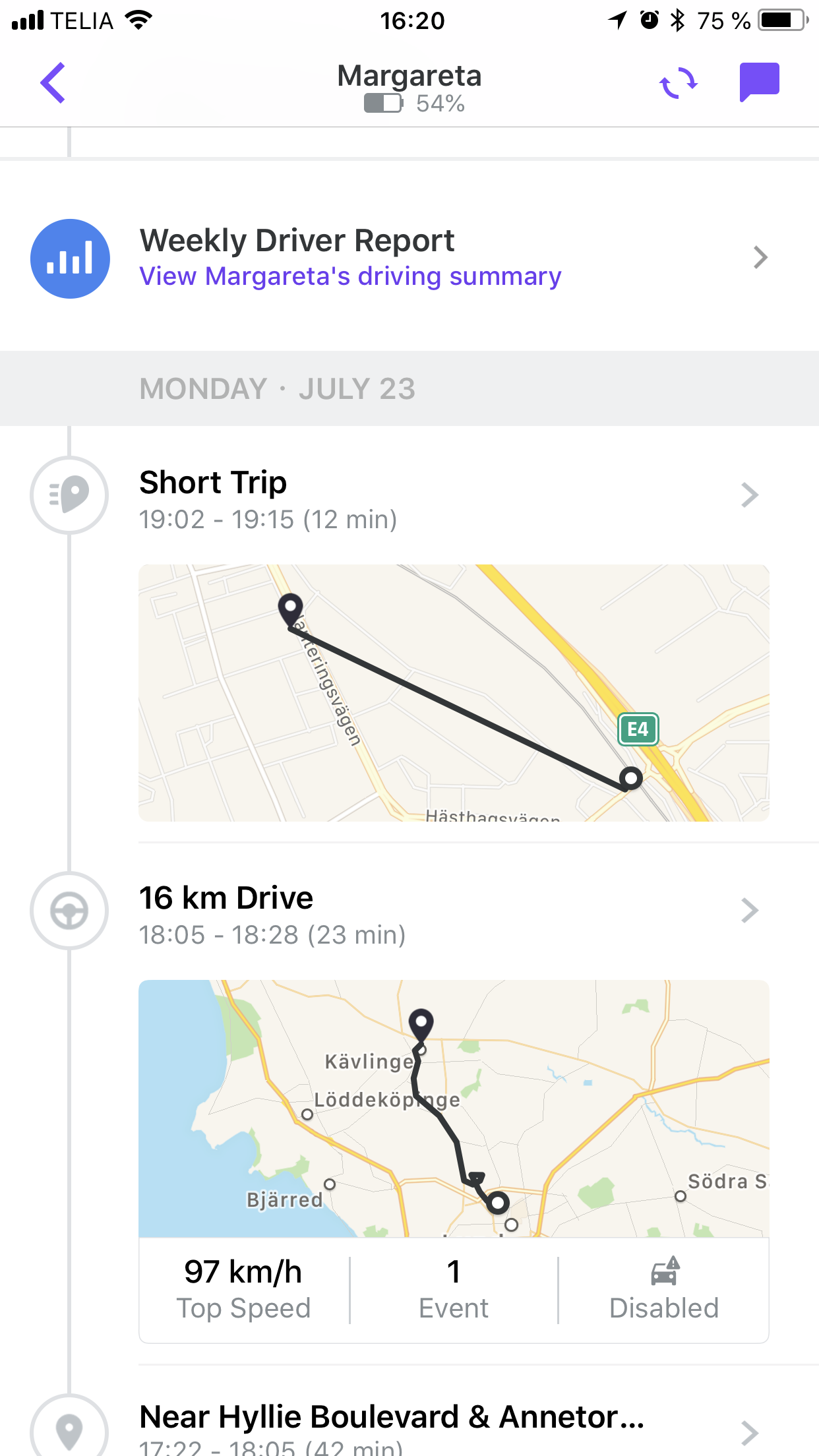 Så då jag igår fick en kommentar efter mitt senaste inlägg om vår marknadshelg och båttur, då jag läste att hon varit ute på hiskeligheter, blev jag tvungen att kolla. Hon skrev även att hennes mobbe hade dött. Och att hon hade åkt ambulans. Men bara som följeslagare. Var det hennes mobbe som legat på båren? Näääää, troligen inte. Men som sagt. Jag kunde inte ringa henne utan fick söka data runt hennes resa i historiken. Och mycket riktigt. Hennes telefon visade fortfarande, så här dagen efter, inga livstecken. Men den hade rest med hem till Sverige och hemmet. Och i historiken kunde jag se: