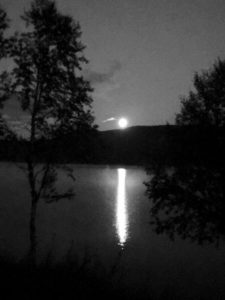 While I am fascinated by these rapid weather changes which are so special here in the mountain world, I am delighted in this facts, the seasonal changes are much more significant. Sometimes I say I don’t see the first star until Brynolf Day. For those of you who not know the calendar by heart, I can tell you that Brynolf has a name day on August 16th. So today. There is so much twilight that you can see a star, even though it is the brightest star. It will be some more as the days pass, or the nights. Since it’s not dark yet, I don’t know if I will be able to see the star this year, or my unpleasant eyes is too bad. But the full moon that shone over the lake tonight I see so far. And the amazing light phenomenon that I saw in the sky in the north last night, it was also fantastic.