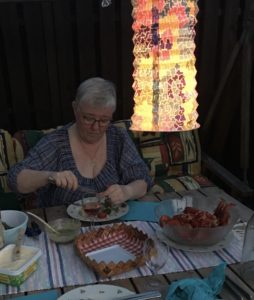 Sistlidna lördag hade vi vår egen lilla ”välkommen hem till oss själv-fest”. Maken hade dukat i trädgården och vi satt i det mysiga augustimörkret och åt kräftor.