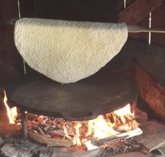 Do not roll a cake too early so it can lay and wait for the one who handles the fire. The risk of it sticking to the peel. (See picture.) The baker must be in phase with the the one who handles the fire.