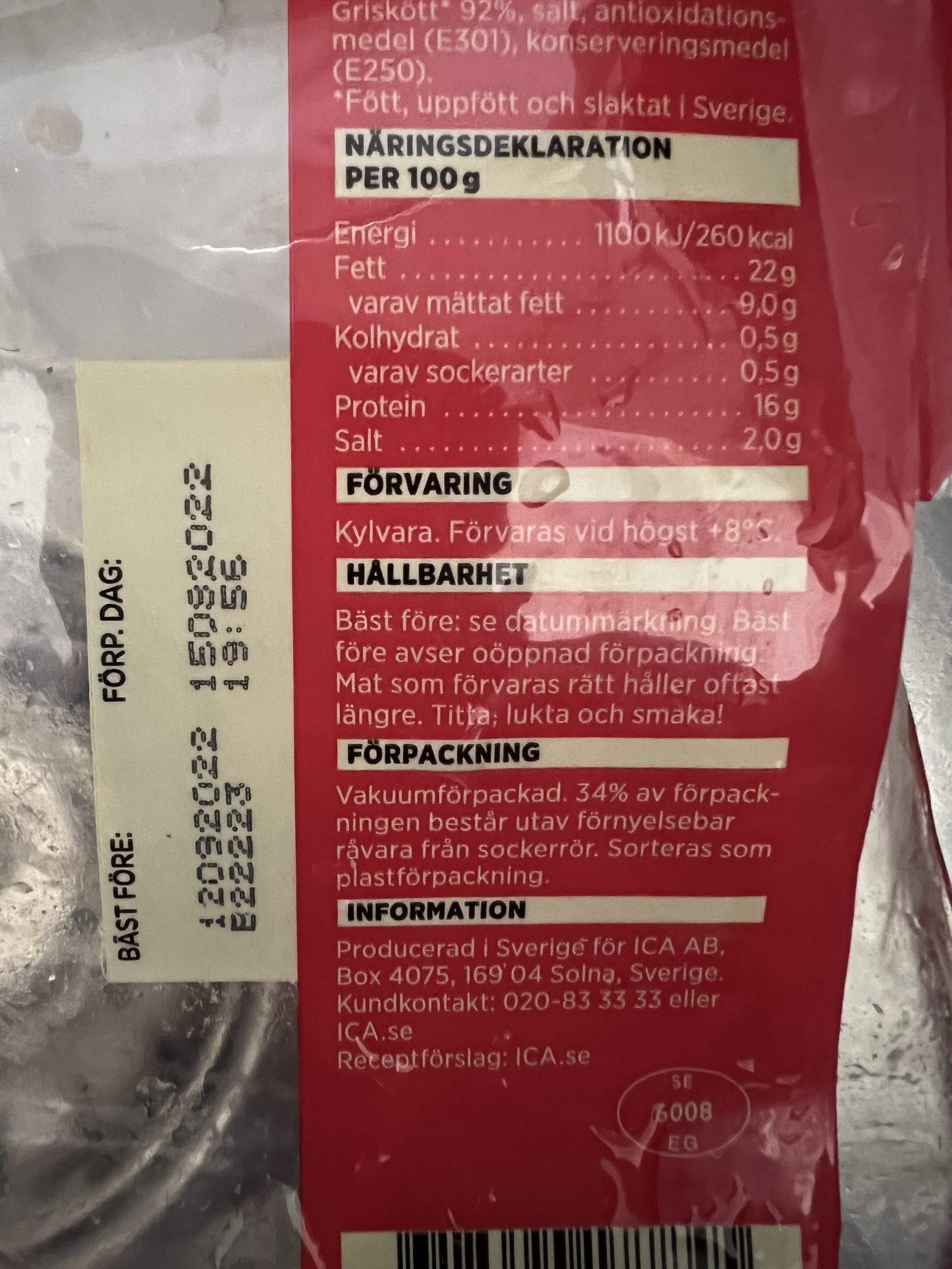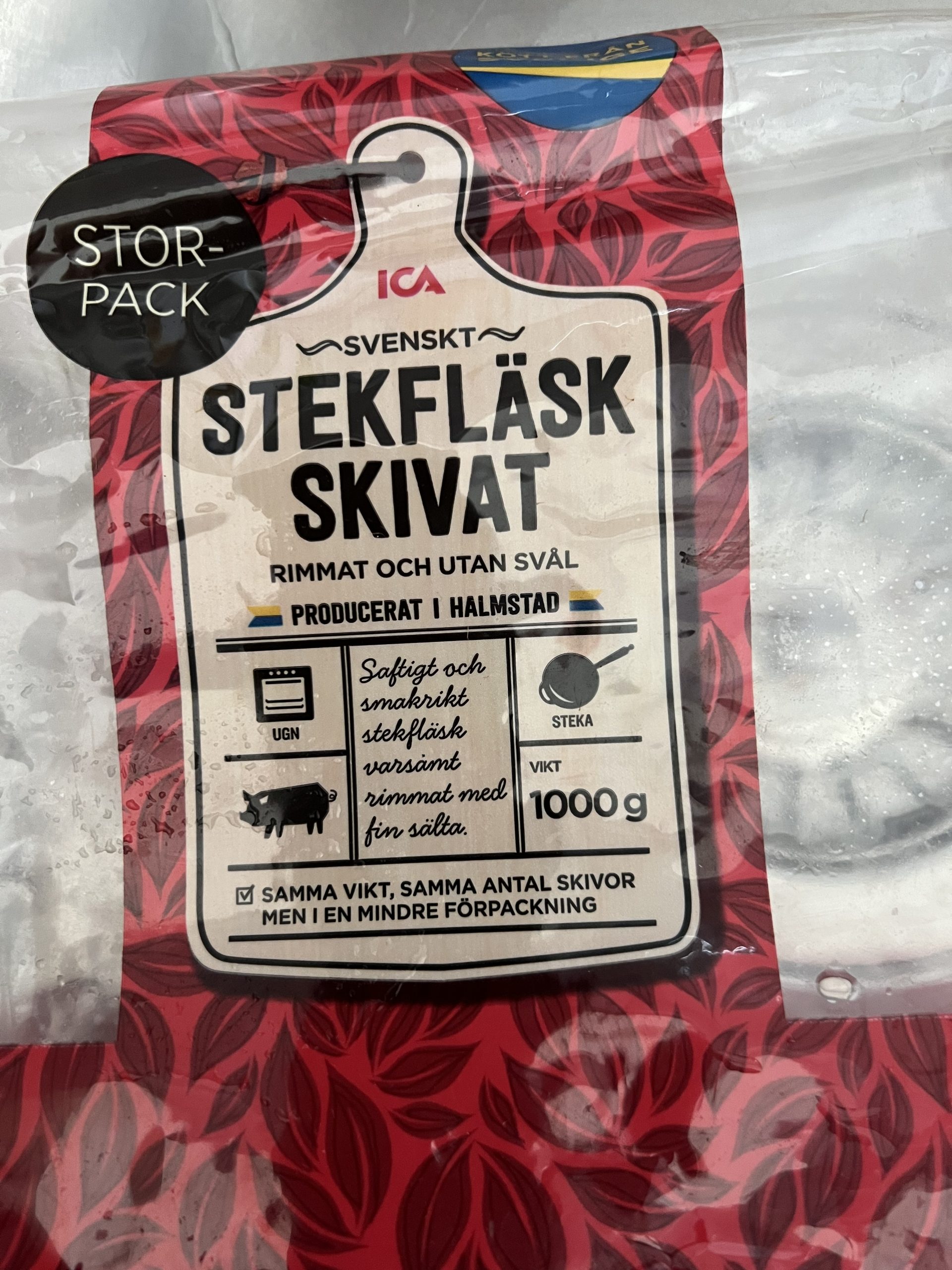 Har idag öppnat en förpackning rimmat skivat fläsk inköpt på ICA. Har i flera år köpt den danska varianten av samma vara, men beslutat att köpa svenskt i dessa orostider. Ska vi försöka vara solidariska?