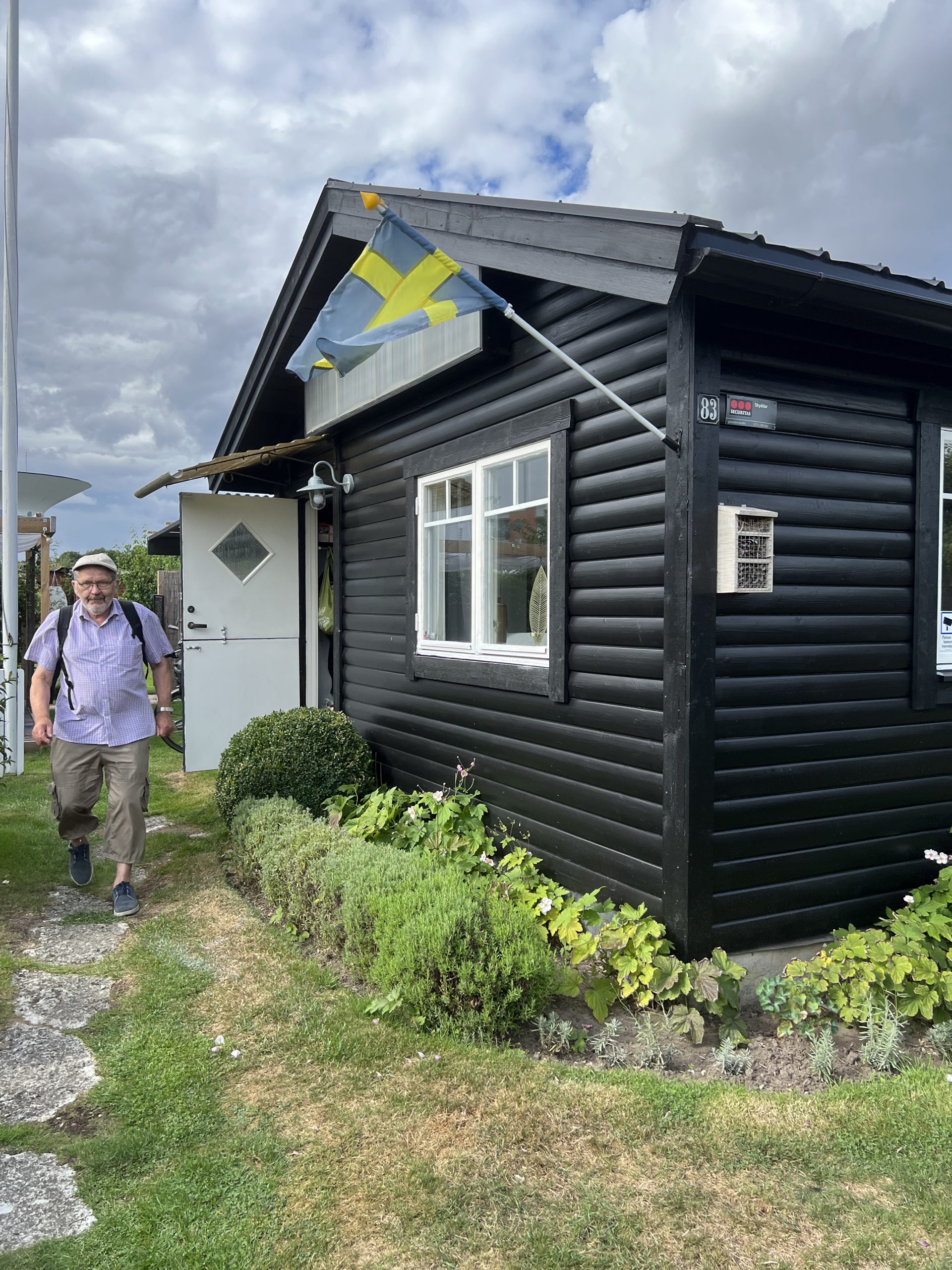 Den här dagen när min man och jag hoppade av bussen, hittade vi en plats där vi åt vår medhavda lunch. Jag avslöjade min önskan att försöka besöka området med alla dessa trädgårdar och stugor. Hade inte varit där på ca 40 år. Vi släpptes in genom den låsta grinden av en dam som jag antar fann oss tillräckligt pålitliga att besöka området. När vi kom utanför ”vår” gamla stuga stod jag där ett tag och tittade på den. Plötsligt var jag medveten om att jag kanske borde be om lov att ta en bild av huset. Men ingen tycktes vara hemma. Vi frågade grannarna om de visste något om ägaren av hus nummer 83 var hemma?